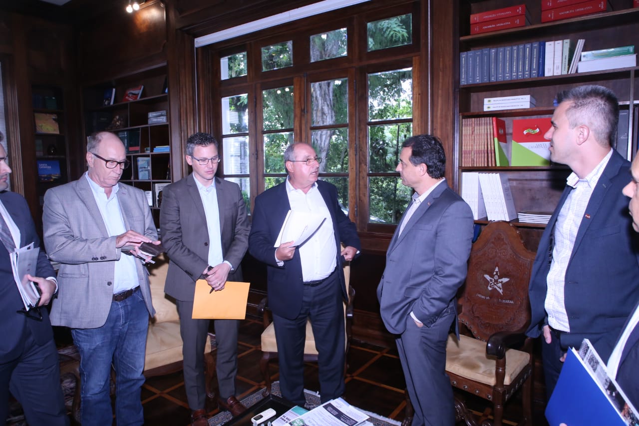 O presidente da Fecomércio SC, Bruno Breithaupt, e uma comitiva de lideranças empresariais fizeram a primeira visita institucional ao governador de Santa Catarina, Carlos Moisés, na tarde desta quinta-feira (7), na Casa da Agronômica. O grupo foi recebido pelo governador, o secretário da Casa Civil, Douglas Borba, e o secretário de Desenvolvimento Econômico Sustentável e Turismo, Lucas Esmeraldino.