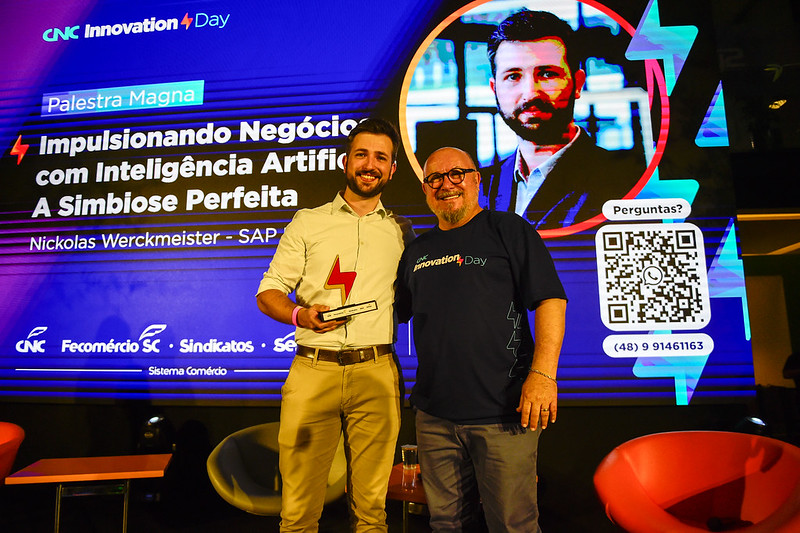 A programação encerrou com palestra Magna “Impulsionando Negócios com Inteligência Artificial: A Simbiose Perfeita” encerrou a programação do CNC Innovation Day em Florianópolis com fala do Head de Tecnologia e Transformação da SAP Labs Latin América, Nickolas Werckmeister.