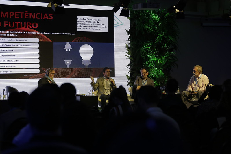 Economias Disruptivas Na plenária sobre Economias Disruptivas, o presidente da Associação Brasileira das Empresas de Software (ABES), Rodolfo Fücher, afirmou que em 2029 serão fabricados robôs tão inteligentes como o ser humano, que as carnes e os ovos terão base vegetal e serão produzidas em laboratórios, que os transplantes de órgãos não sofrerão rejeição e haverá a volta do uso das bactérias e da produção de antibióticos para combater diabetes e outras doenças. Fücher ressaltou que a indústria automobilística teve um pico em 2017 e agora entrou em declínio e que a utilização do petróleo nos carros perderá espaço para os carros elétricos dentro de 10 anos. “A automação vai mudar a carreira de 16 milhões de brasileiros até 2030”, prevê o executivo. |
