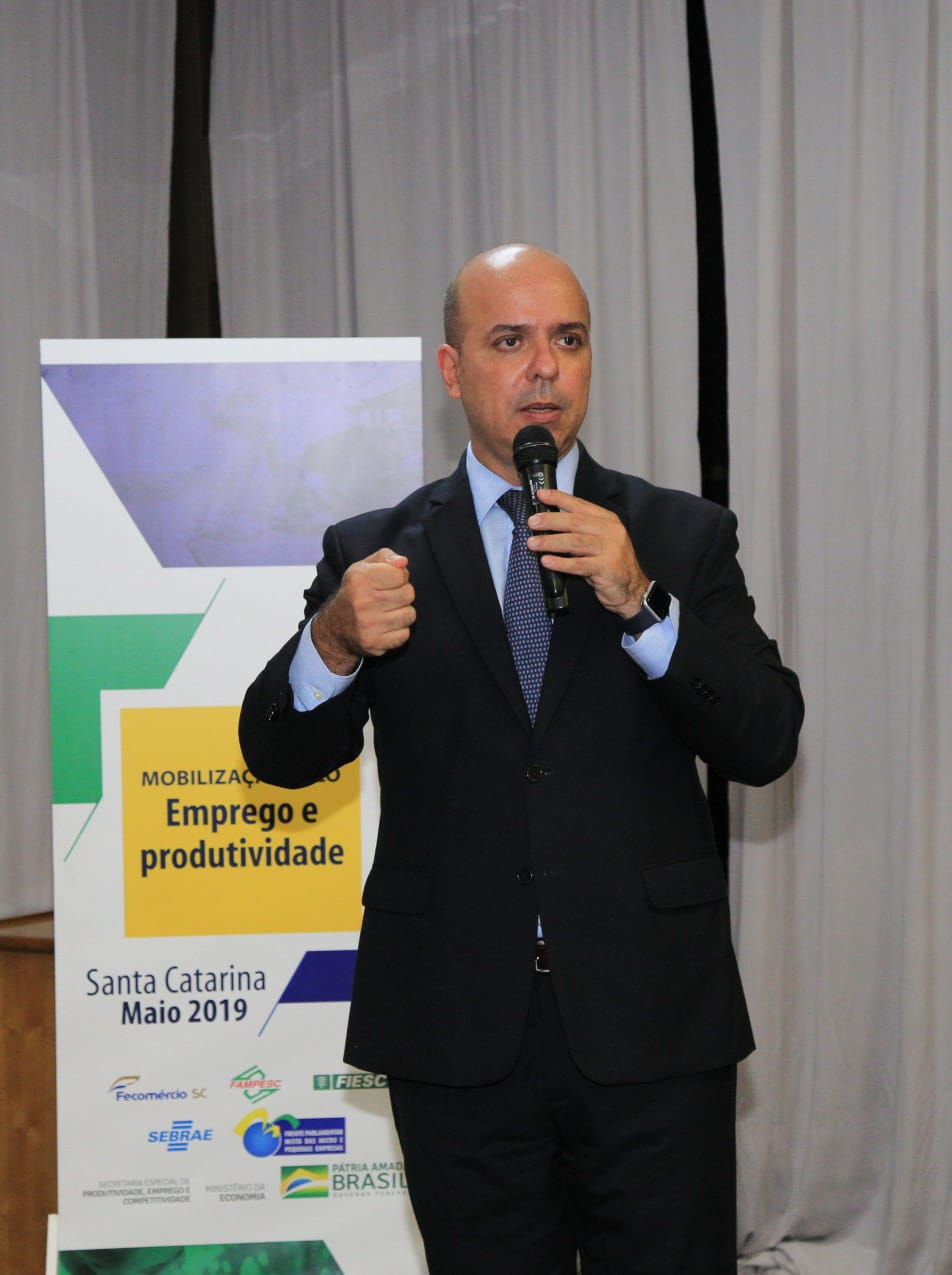 Representantes da Fecomércio SC participaram do lançamento do Programa Mobilização pelo Emprego e Produtividade, apresentado pelo secretário do Ministério da Economia, Carlos Alexandre da Costa, na manhã desta quinta-feira (23), em Joinville. O evento é realizado pelo Ministério em parceria com os governos estaduais e o Sebrae.