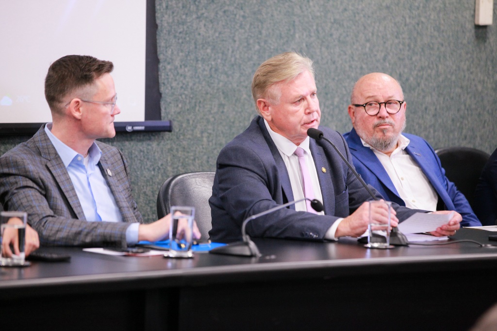 O secretário de estado da Fazenda, Cleverson Siewert, lideranças do varejo catarinense, empresários e entidades do setor também estiveram presentes, além dos parlamentares que compõe a Frente- Tiago Zilli (MDB), Maurício Peixer (PL), Altair Silva (PP) e Fabiano da Luz (PT)- e os deputados Antídio Lunelli, Mario Mota e Emerson Stein.